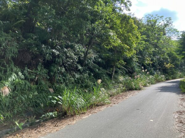 ・東側隣地の細長い土地は「道」ではありません。この東側隣地の登記名義人である本土法人へ電話してもコミュニケーションが図れませんでした。文書を送っても回答がありません。現況もただの山林(傾斜地)なので道としての利用はできません。