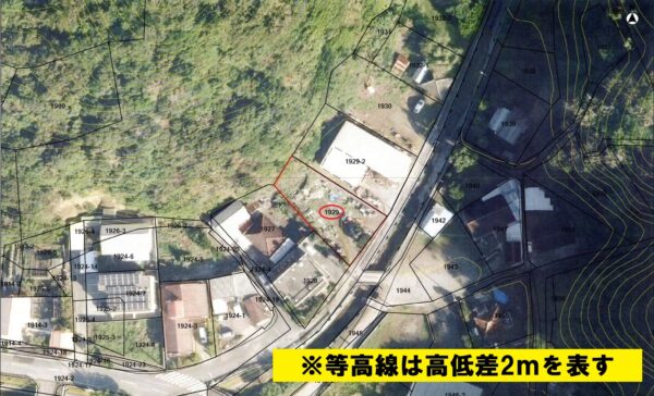 ◆土地全体が土砂災害警戒区域(イエローゾーン)内で、一部が土砂災害特別警戒区域(レッドゾーン)内です。融資の審査が通常よりも慎重に判断されます。建築をお考えでしたら、レッドゾーン内を避けての建築になりますので、この土地にご希望の建物が建てられるか設計士と相談しながらご検討ください。ちなみに、かつてはここに古民家が建っていました。